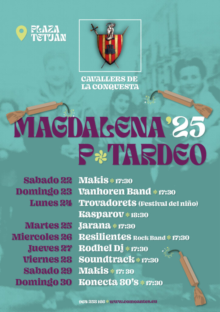 Ya no queda nada para que empiece las fiestas de la Magdalena 2025, que tendrá lugar del 22 al 30 de marzo y, como es habitual, hemos preparado un programa de actuaciones para que podáis disfrutar de la música en la Plaza Tetúan.